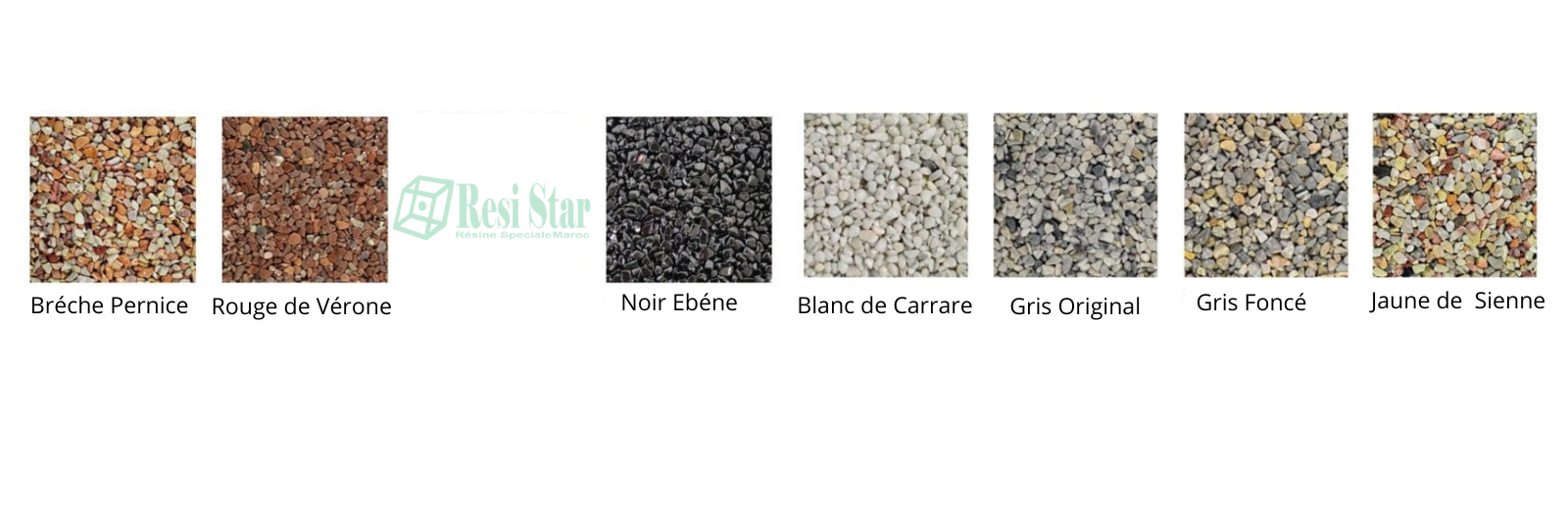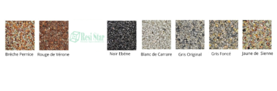 Resi Stone presente des couleurs naturelles,determinees par le type de pierre utilise.