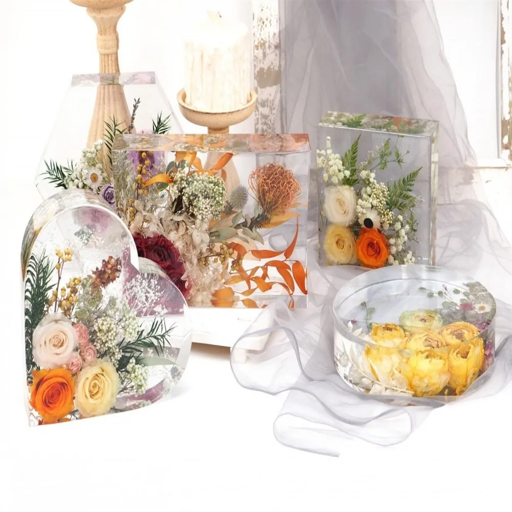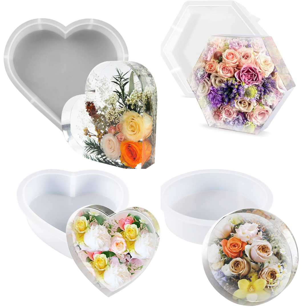 Grand échantillon en résine de Silicone, moule carré rond en forme de cœur, hexagone, préservation de fleurs, spécimens d’insectes, moulage artisanal, décoration de maison D. 22.1 x 19.9 x 5.1 c