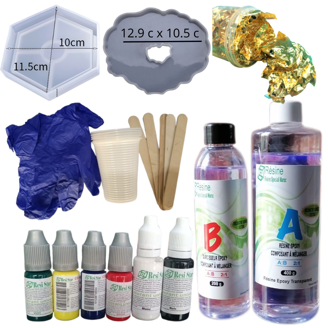 Kit de résine époxy transparente 600g + 13 Accessoires pour fabrication de bijoux +Livraison gratuite N°147/159